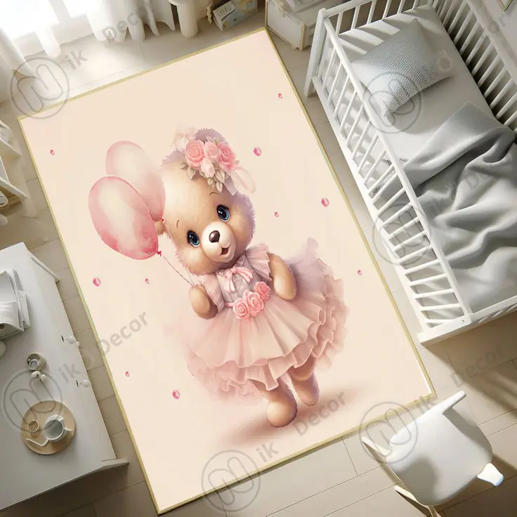 فرش دخترانه طرح تدی و بادکنک ابعاد پادری تا ابعاد بزرگ